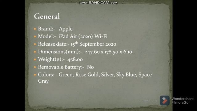Apple iPad Air 2020 Detailed Specifications