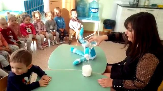 276 В группе "Зайчата " месяц "Снега и льда".Знакомство снегом из памперса, он красиво выглядит, долго не засыхает, а если засохнет, его можно снова размочить водой. Он очень рыхлый и влажный. Но лепить из него ничего не получится – можно только копать и делать горки