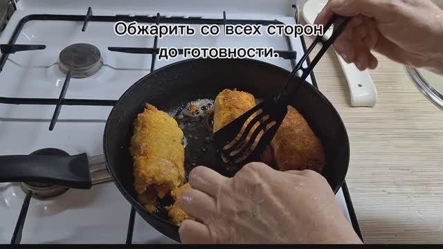 Куриные рулетики с овощами и сыром на сковороде.