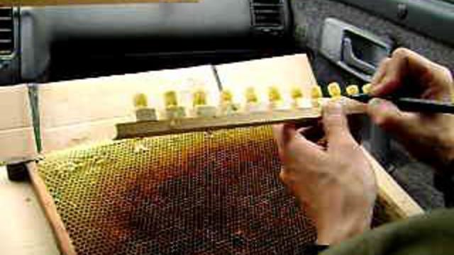 Делается пометка маркером принятых личинок Карпатской породы, а не принятые мисочки подготавливаются для дальнейшего прививания от Среднерусской зимостойкой и продуктивной пчелосемьи.