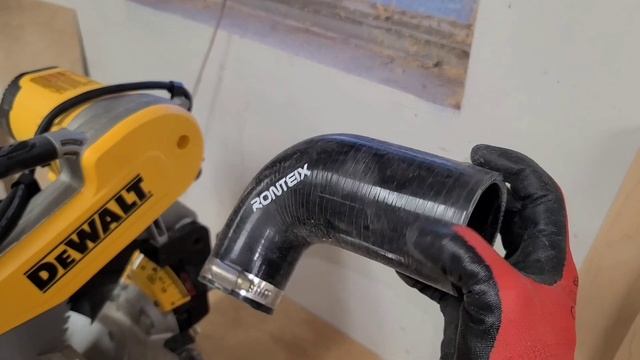 Add a 90° flexible adapter for dust collection to a Dewalt DWS716XPS miter saw. Ronteix Universal 90 Degree Elbow Reducer Silicone Hose ID 1.75 Inch to 2.5 Inch (45MM-63MM) https://a.co/d/6ozJzHH