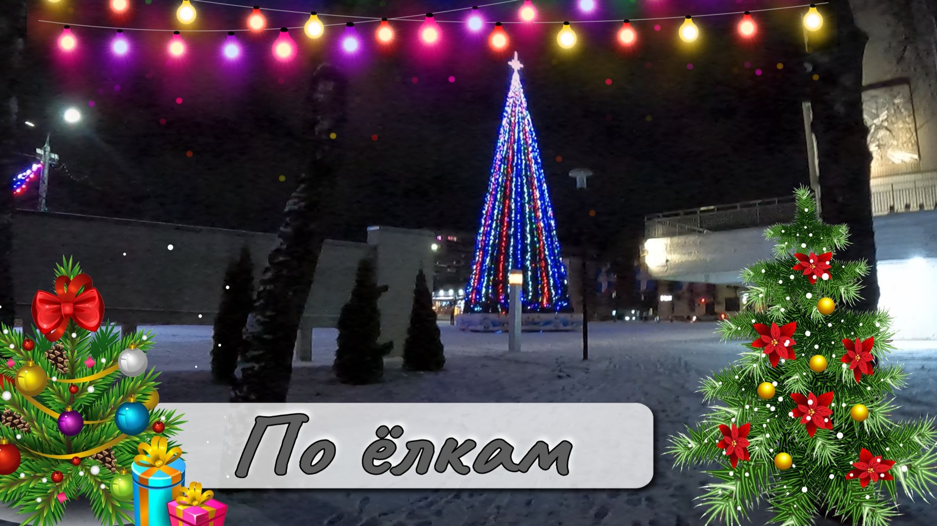 Видео создано из вечерней и утренней прогулке по городу. Получилось что мы как бы прошли по ближайшим новогодним елкам.