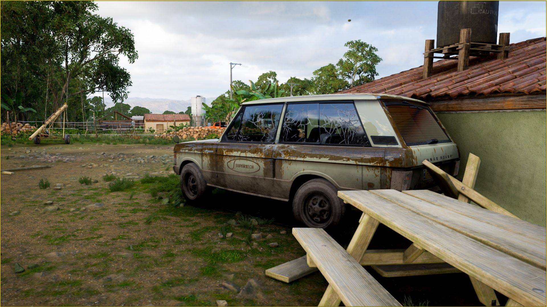 Walking in the afternoon, I accidentally saw something interesting from afar. It was a crashed and rusty Range Rover 1973. After talking with the owners of the house, they agreed to give it to me for an attractive price. As soon as I took it, I wanted to evaluate its technical condition a little. But as it turned out, the engine was in a terrible state, the suspension and wheels were badly damaged. Therefore, my first trip was very short. I had to urgently go to the house of a familiar mechanic. When he was able to deliver the car to my house, I started the restoration. Once the car was ready, I had the pleasure of testing it off-road in Forza Horizon 5!!!