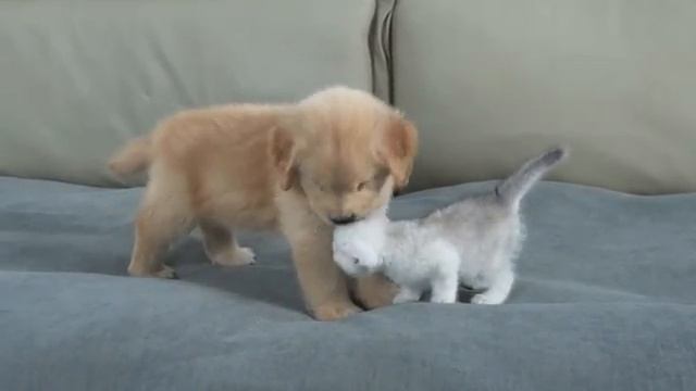 котенок и щенок-ретривер