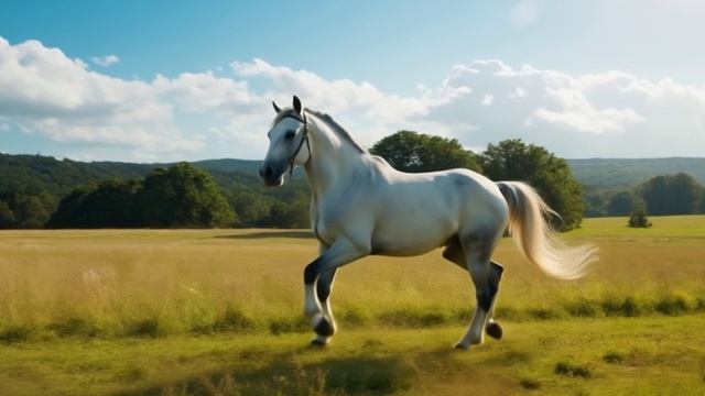 Футаж. Белый конь. Зелёное поле.mp4