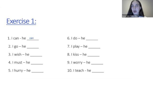 #Immersion #English #present_simple Present Simple | Настоящее простое время в английском языке. Урок 2 Запишитесь на пробный урок с Аллой или носителями из Канады, Америки и Англии по ссылке https://immersion-school.com/english_for_begginers или через Whatsapp +972586884050 В этом мы сделаем акцент на правописании, а именно как меняется окончание слова, если мы прибавляем к нему -s. В каком случае необходимо прибавлять окончание -s? Когда мы говорим от 3 лица единственного числа - he, she, it. Тайм коды: 00:06 verbs 00:34 verbs (ends in -y) in present simple (ies) 01:28 verbs (ends in a vowel) in present simple (s) 02:00 verbs (ends in -s,sh,ch,o,ss,x) in present simple (es) 02:40 must can 03:00 exercise 1 present simple 04:23 exercise 2 present simple / modal verbs 05:46 homework Facebook https://www.facebook.com/linguisticonlineschoolimmersion Instagram https://instagram.com/immersion_onlineschool