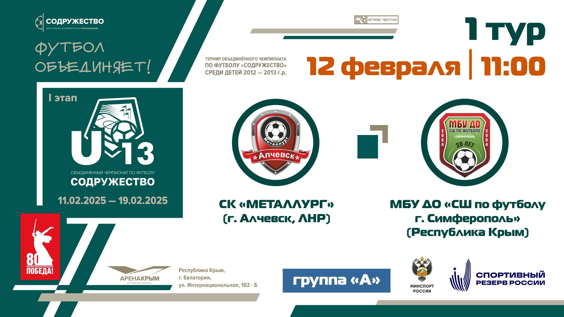 1 ТУР [Группа А] | СК "Металлург" (г. Алчевск, ЛНР) - МБУ ДО "СШ по футболу" (г. Симферополь, РК)