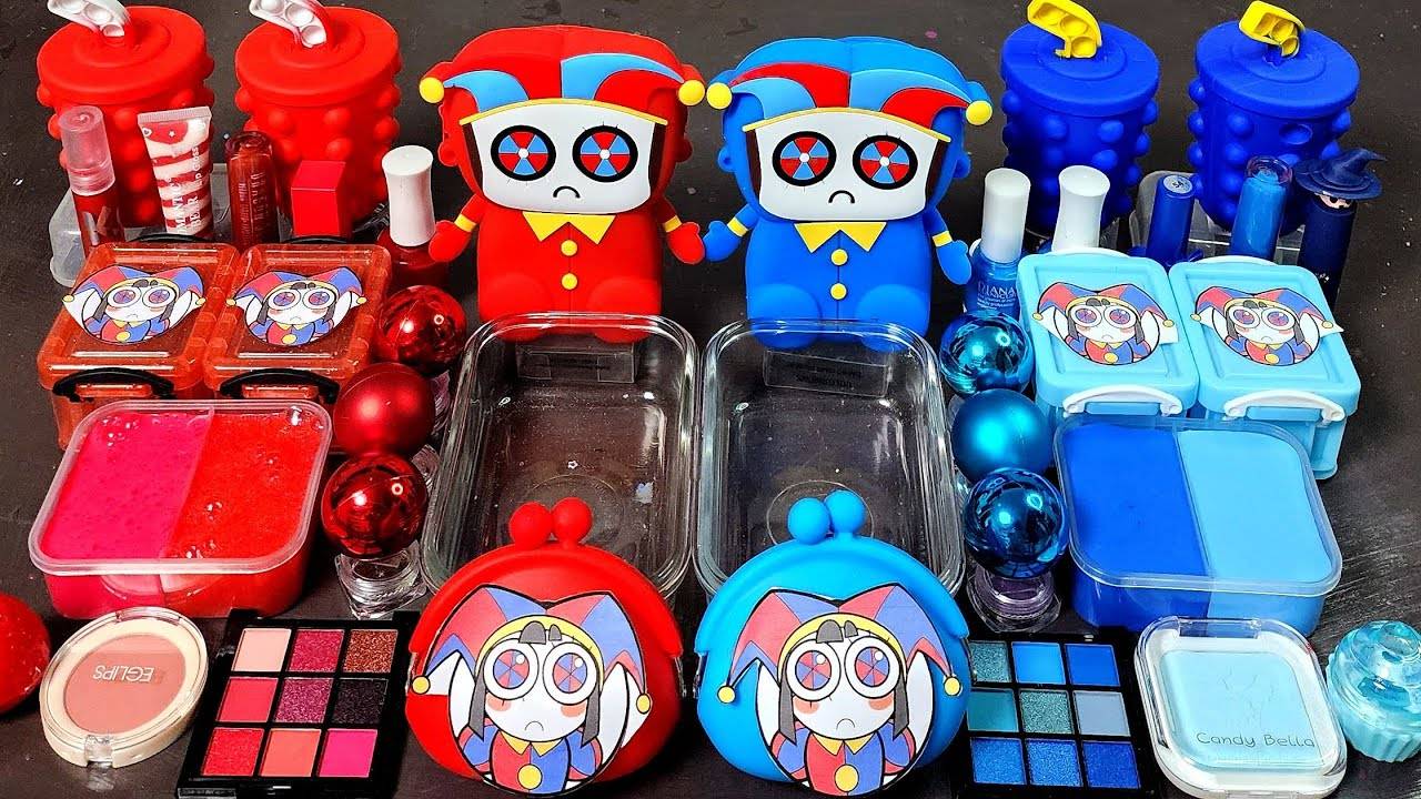 ASMR Удивительный цифровой цирк, Смешивающий красную и синюю слизь случайным образом в слайм ASMR