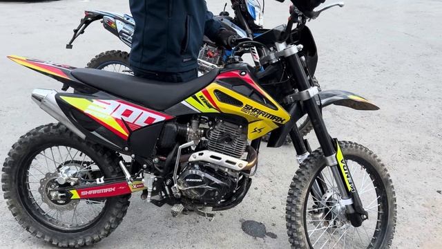 Мотоцикл кроссовый эндуро SHARMAX SPORT 300 Air - Описание Обновлённый, Sharmax Sport 300 Air — идеально сбалансированный байк с системой воздушного охлаждения. Он создан для тех, кто продолжает своё путешествие в мире эндуро. Улучшенная подвеска, новый двигатель с балансировочным валом усовершенствованная тормозная система! В основе — качество и надёжность. Двигатель Идеально сбалансированный двигатель 175 FMM 5, от концерна Zongshen, с балансировочным валом будто был создан для этого байка. 300 куб. см и 25 л.с. — более чем достаточно для быстрого старта. Этот силовой аппарат сделан, чтобы показать оптимальное сочетание полезной мощности и низкого веса. Карбюратор Надёжный карбюратор Nibbi PE 30 — один из лучших в своём классе. Карбюратор от легендарного американского бренда, установленный на десятках эндуро байков во всём мире. Топливная смесь высшего качества наполнит цилиндры за долю секунды и обеспечит быстрый старт даже в лютый холод. Трансмиссия 5-ступенчатая коробка передач с шестернями из прочного кованного металла практически не изнашивается с течением времени. Лапка переключения — алюминиевая и складная, не пострадает даже в случае жёсткого приземления. Не рекомендуем проверять её на прочность, просто поверьте нам на слово. Подвеска В конструкции задней подвески расположена прогрессия, позволяющая с комфортом передвигаться по мелкой щебёнке и преодолевать прыжки без ущерба для амортизатора. Байк легко настроить под свой вес и стиль езды, подобрав идеальный баланс жёсткости. Охлаждение Sharmax Sport 300 Air оборудован системой воздушного охлаждения. Нет громоздкого радиатора, вес байка стал меньше, управляемость — лучше. Просто нажмите на газ — и вперёд! За температуру не переживайте — не перегреетесь. Идеальная геометрия Симметричная дуплексная рама, позаимствованная у профессиональных гоночных байков, обеспечит оптимальную жёсткость и отзывчивость. Отдельно проваренные швы дают дополнительную прочность конструкции мотоцикла. Благодаря такой форме райдер и байк становятся одним целым, с лёгкостью преодолевая любые препятствия трека. Отзывчивый и надёжный, мотоцикл Power Max 250 обеспечит уверенный старт на любой дистанции. Бояться перегрузок — не про него. Дуплексная симметричная рама и отдельно проработанные сварные соединения попросту не заметят ударов и преград. Sharmax Power Max 250 готов побеждать там, где другие сдаются. Создан как для тех, кто только начинает свой путь в эндуро, так и для более опытных райдеров.Идеально сбалансированный двигатель 172 FMM3A, от концерна Zongshen будто был создан для этого байка. 250 куб. см и 21 л. с. — более чем достаточно для быстрого старта. 5-ступенчатая коробка передач с шестернями из прочного кованного металла практически не изнашивается с течением времени. Лапка переключения — алюминиевая и складная, не пострадает даже в случае жёсткого приземления. Nibbi PE 30 — и этим всё сказано. Карбюратор от легендарного американского бренда, установленный на лучших кроссовых и эндуро байках в мире. Топливная смесь высшего качества наполнит цилиндры за долю секунды и обеспечит быстрый старт даже в лютый мороз. Доказано — надёжно. Подвеску Sharmax Power Max 250 можно настроить под грязь, камни и песок без потери качества. Передняя вилка фирмы KKE имеет регулировки сжатия и отбоя, задняя (KKE) — справится с любыми преградами, от камней до деревь