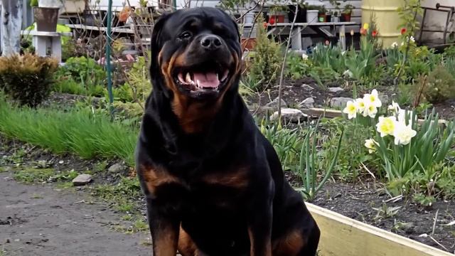 Бродячая кошка пришла к нам и принесла котенка. Встреча страшного ротвейлера и маленького рыженького котенка. Очень интересная и необычная реакция собаки.