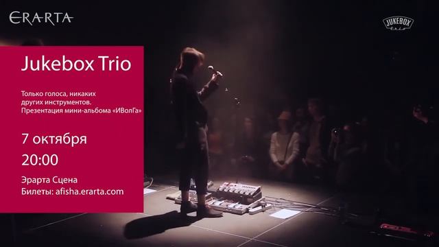 7 октября 2016 г. на Эрарта Сцене состоится концерт-презентация мини-альбома «ИВолГа» коллектива Jukebox Trio. Подробности и билеты онлайн http://www.erarta.com/ru/calendar/events/detail/e42913f5-736f-11e6-af98-8920284aa333/