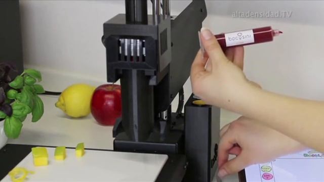 Impresoras 3D de alimentos a punto de incorporarse al menú [Video] Una start-up alemana llamada Print2Taste ha desarrollado un dispositivo al que ha denominado Bocusini que permite a los usuarios dotar a sus impresoras 3D con la capacidad de imprimir de forma tridimensional filamentos alimenticios. Otra particularidad realmente interesante del sistema Bocusini son las cápsulas de alimentos precargadas que facilitarán la experiencia de la impresión tridimensional de forma ordenada. En total, Print2Taste ha desarrollado un puñado de alimentos extruibles que incluyen mazapán, chocolate y jaleas de frutas, entre otros. Encuentra más detalles en http://altadensidad.com/?p=77603