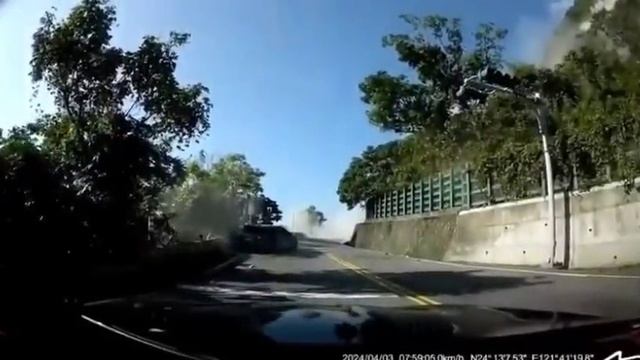 Огромный валун придавил легковушку во время землетрясения на Тайване