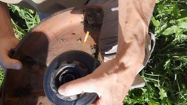Папа учит меня запрвлять леску в электический триммер. Хроника июль 2022 года.