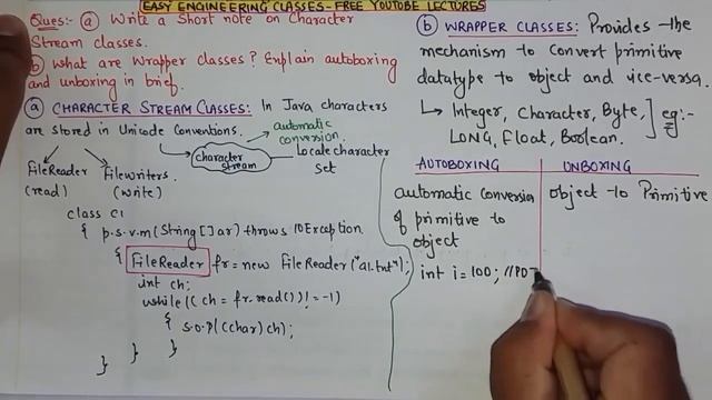 Java Character Stream Class, Wrapper Classes, MouseListener Questions for Semester Exams | Part 21 ? Follow us on Social media: Telegram Channel: https://t.me/easyengineeringclasses Facebook: http://tiny.cc/ibdrsz ▶️ Links for Hindi playlists of all subjects are: Data Structure : http://tiny.cc/lkppsz DBMS : http://tiny.cc/zkppsz Java: http://tiny.cc/1lppsz Control System: http://tiny.cc/3qppsz Computer Network Security: http://tiny.cc/6qppsz Web Engineering: http://tiny.cc/7qppsz Operating System: http://tiny.cc/dqppsz EDC: http://tiny.cc/cqppsz TOC: http://tiny.cc/qqppsz Software Engineering: http://tiny.cc/5rppsz DCN: http://tiny.cc/8rppsz Data Warehouse and Data Mining: http://tiny.cc/yrppsz Compiler Design: http://tiny.cc/1sppsz Information Theory and Coding: http://tiny.cc/2sppsz Computer Organization and Architecture(COA): http://tiny.cc/4sppsz Discrete Mathematics (Graph Theory): http://tiny.cc/5sppsz Discrete Mathematics Lectures: http://tiny.cc/gsppsz C Programming: http://tiny.cc/esppsz C++ Programming: http://tiny.cc/9sppsz Algorithm Design and Analysis(ADA): http://tiny.cc/fsppsz E-Commerce and M-Commerce(ECMC): http://tiny.cc/jsppsz Adhoc Sensor Network(ASN): http://tiny.cc/nsppsz Cloud Computing: http://tiny.cc/osppsz STLD (Digital Electronics): http://tiny.cc/ysppsz Artificial Intelligence: http://tiny.cc/usppsz Links for GATE/UGC NET/ PGT/ TGT CS Previous Year Solved Questions: UGC NET : http://tiny.cc/brppsz DBMS GATE PYQ : http://tiny.cc/drppsz TOC GATE PYQ: http://tiny.cc/frppsz ADA GATE PYQ: http://tiny.cc/grppsz OS GATE PYQ: http://tiny.cc/irppsz DS GATE PYQ: http://tiny.cc/jrppsz Network GATE PYQ: http://tiny.cc/mrppsz CD GATE PYQ: http://tiny.cc/orppsz Digital Logic GATE PYQ: http://tiny.cc/rrppsz C/C++ GATE PYQ: http://tiny.cc/srppsz COA GATE PYQ: http://tiny.cc/xrppsz DBMS for GATE UGC NET : http://tiny.cc/0tppsz