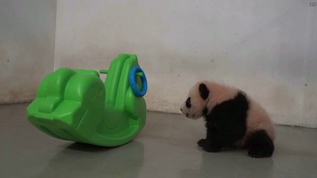 Панда Катюша испугалась новой игрушки