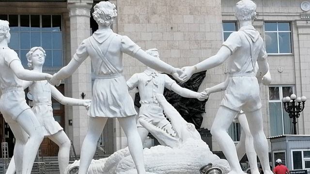 Волгоград. Хоровод пионеров вокруг крокодила. Фонтан у вокзала.)