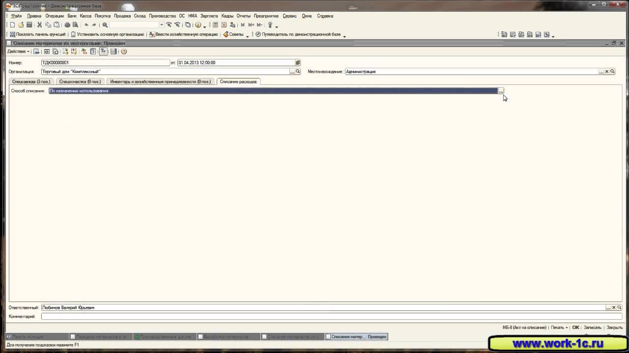 Спецодежда 04 Списание материалов из эксплуатации