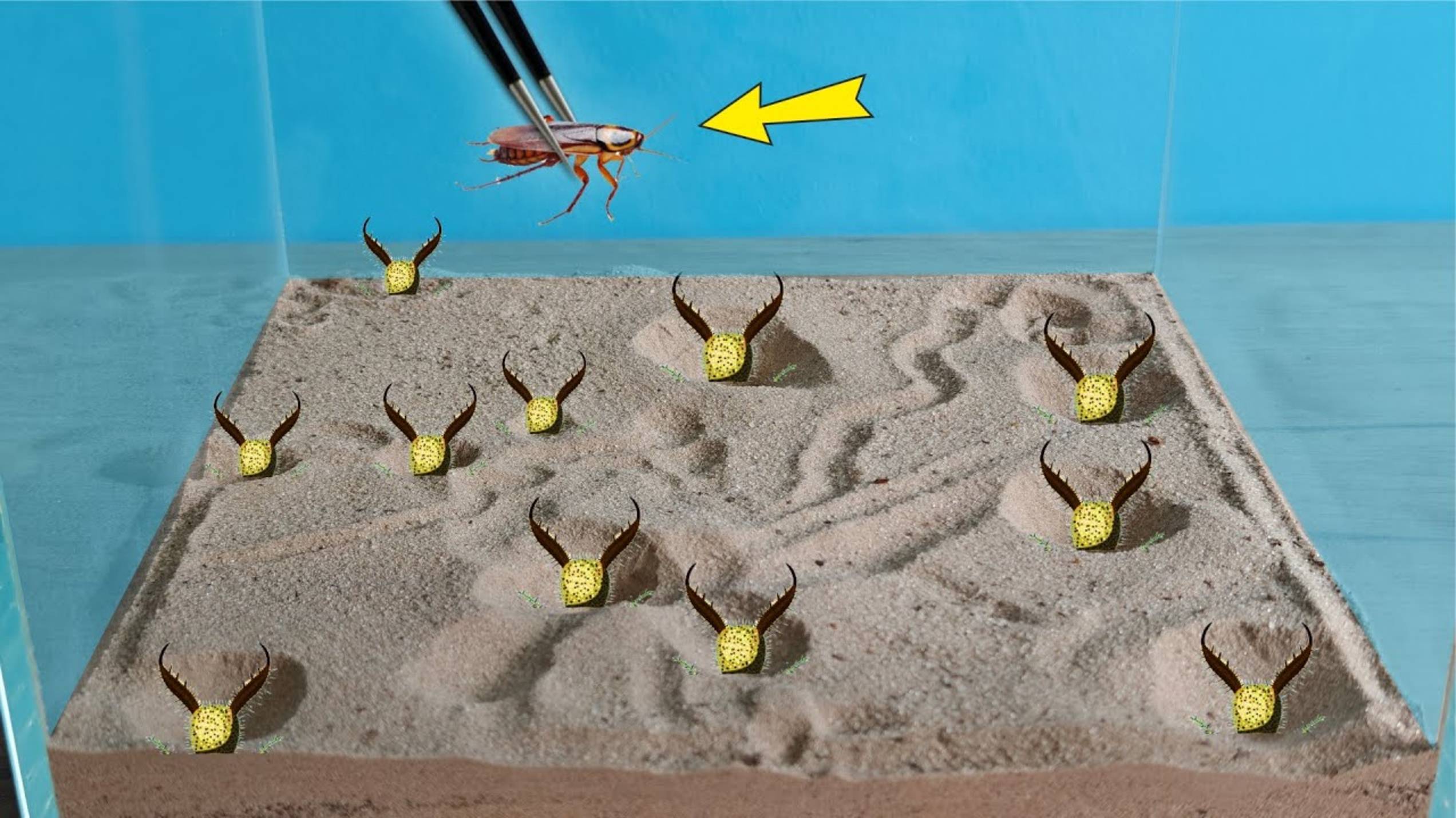 Что если 10 муравьиных львов посадить в один аквариум и бросить к ним таракана?