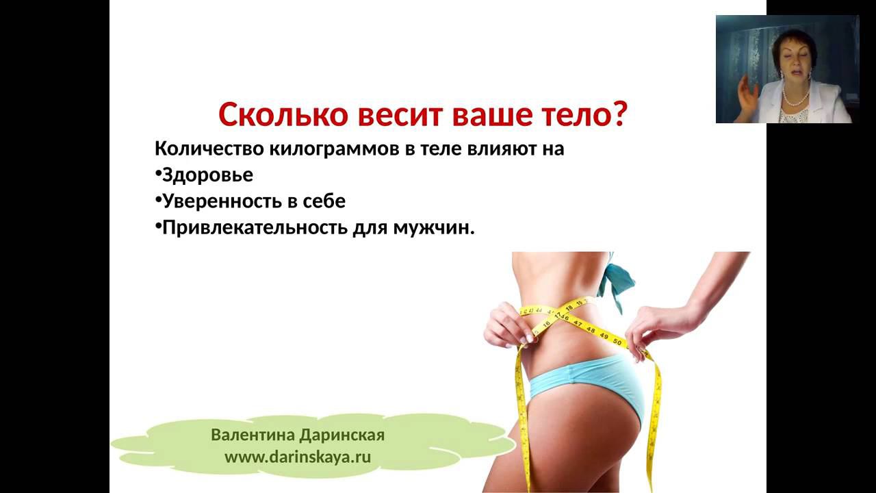 Жизнь без лишних килограммов http://lenasmol.autoweboffice.ru/?r=ordering/cart/as1&id=26&clean=true&lg=ru Скайп mamalenasm , эл. почта es101@list.ru – вопросы по оплате и заказам. Валентина Даринская В основе курса "Жизнь без лишних килограммов" лежат технологии НЛП и эриксоновского гипноза. Во время сеансов даются мягкие внушения на новое пищевое поведение. В результате вы не будете хотеть есть жирное и сладкое и насыщаться малым количеством пищи. Это будет очень естественно без мучительных ограничений - просто организм будет хотеть малокалорийные продукты. За 5 сеансов вы сбросите от 5 кг.