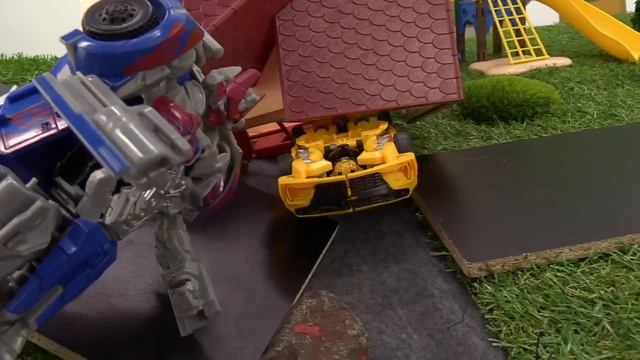 Игры для мальчиков. Трансформеры Бамблби и Оптимус в мастерской Дениса