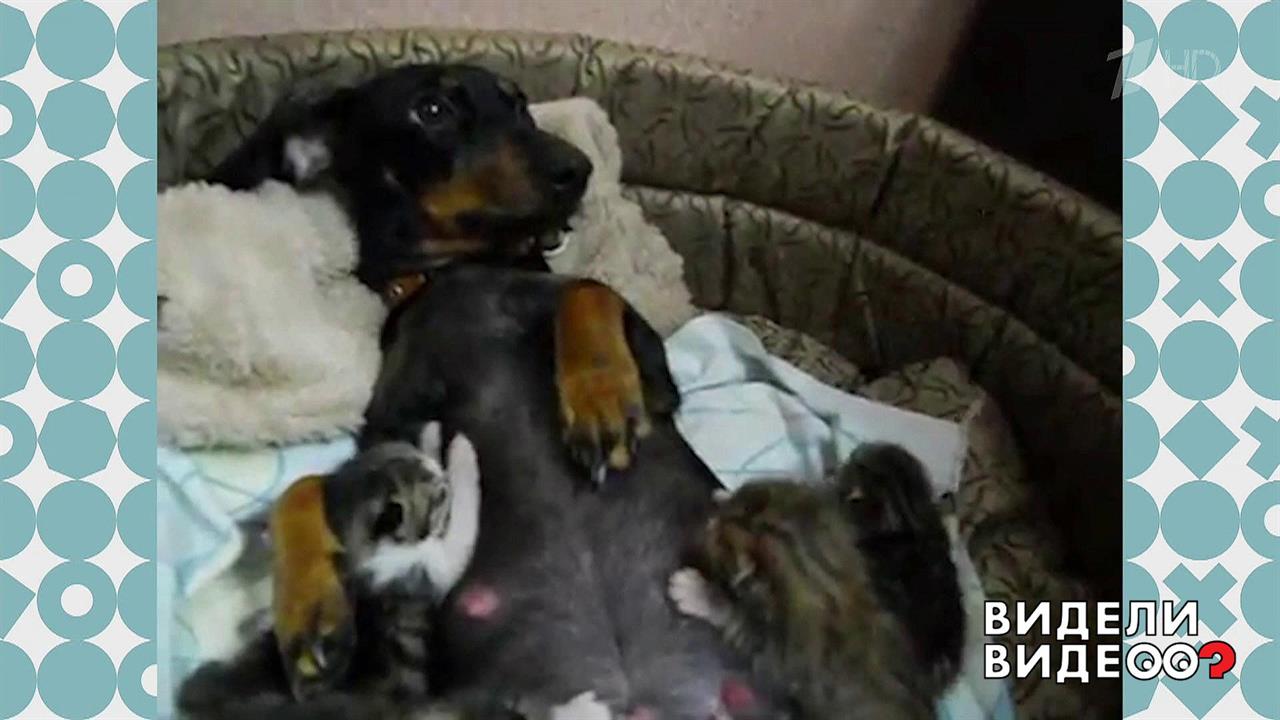 Такса выкормила котят. Видели видео? Фрагмент выпуска от 15.12.2019