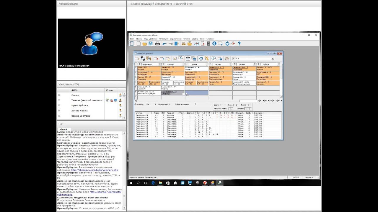 Запись вебинара от Программного центра "Помощь образованию" для зам.руководителя по УВР образовательных организаций. Тема: "Автоматическое составление школьного расписания в программе "Экспресс-расписание Школа" Дата проведения: 10.09.2015