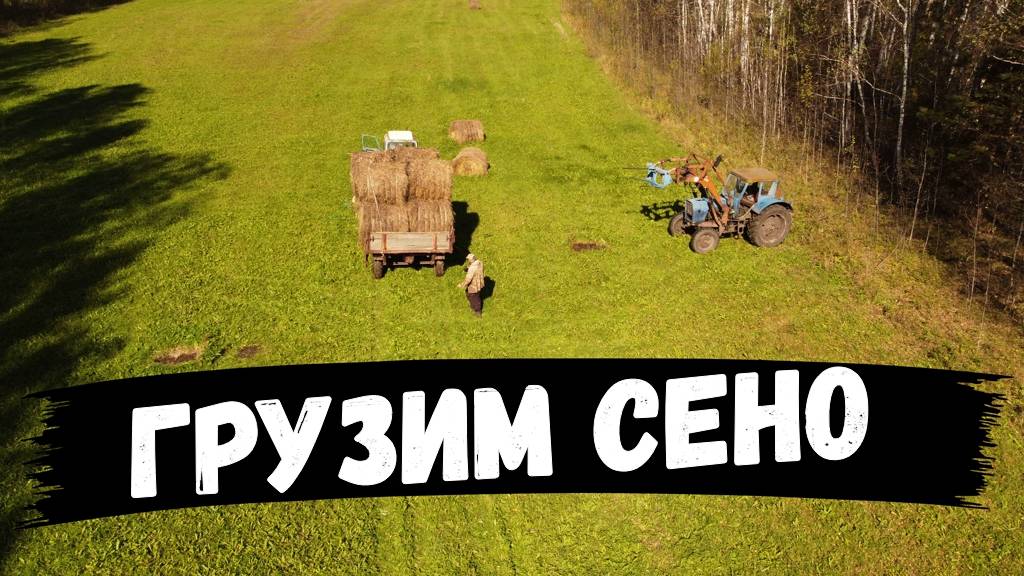 Перевозка и погрузка сена. Вид сверху.