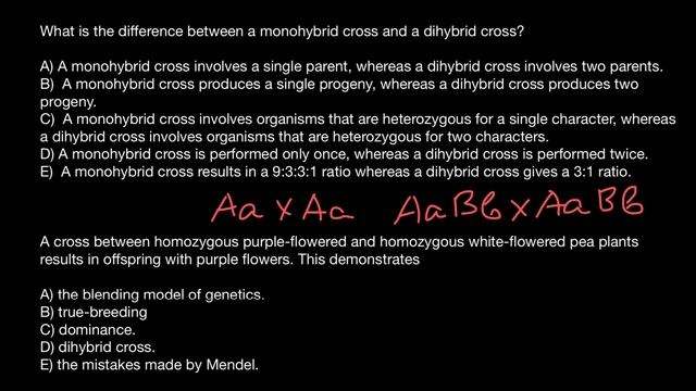 Dihybrid cross versus monohybrid cross