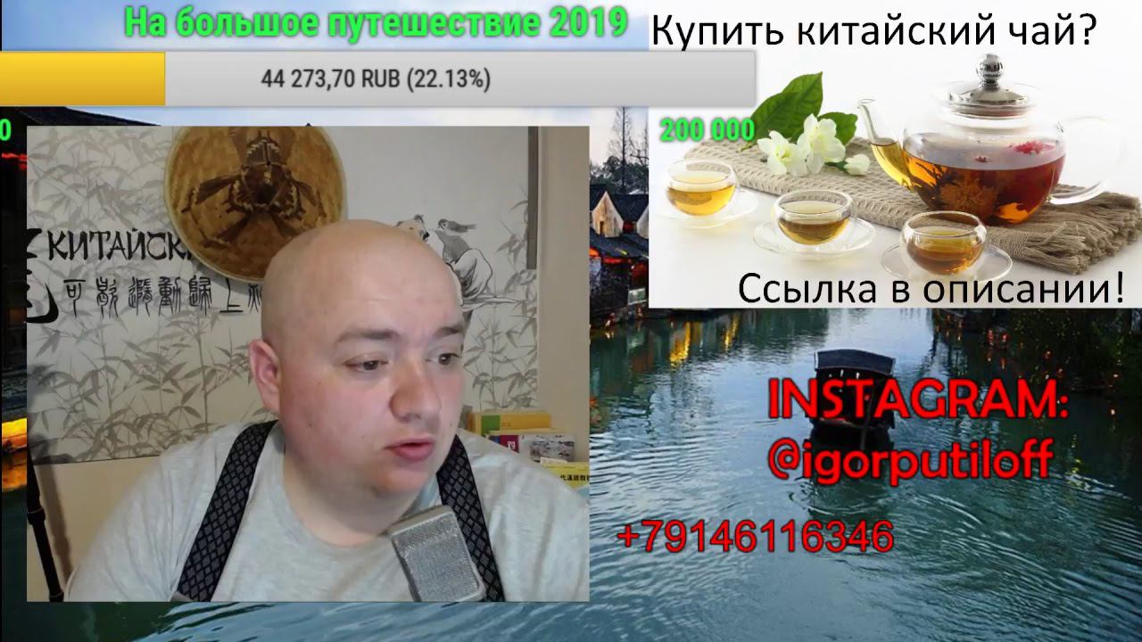 Донат (отображается на экране): http://www.donationalerts.ru/r/putiloff Официальная группа канала https://vk.com/club133678276 Купить чай: https://vk.com/market-133678276 *** Whatsapp, Telegram, Viber, Wechat: +79146116346 (можно звонить, если дозвонитесь) Для пожертвований (донатов) : DonationAlerts: http://www.donationalerts.ru/r/putiloff PayPal: igorputiloff@yandex.ru Карта сбербанка: 4276 8030 1859 0360 WeChat-Pay (微信支付) http://s012.radikal.ru/i319/1707/9c/a93989b62262.png Alipay (支付宝): kitairus@163.com Яндекс-деньги: 41001855873853 Инстаграм: https://www.instagram.com/igorputiloff/