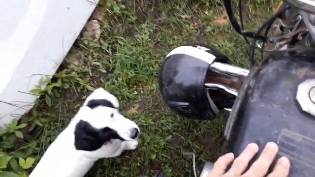 Показываю вам как моя собака Бим катается со мной на на мопеде Альфа.