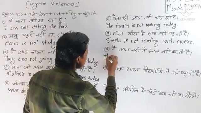 AS SHIKSHA CLASSES # ENGLISH GRAMMAR DAY-16 PRESENT CONTINUOUS TENSE (NEGATIVE SENTENCES) # HOME WORK TRANSLATION DAY-15 1. He is reading a newspaper. 2. Those boys are playing in the park. 3. Sita is writing a book. 4. That boy is eating the food. 5. You are drinking tea. FACEBOOK:- AS SHIKSHA CLASSES INSTAGRAM:- ASHOKSINGHSHIKSHA93 WHATSAPP NO:- 9639701499
