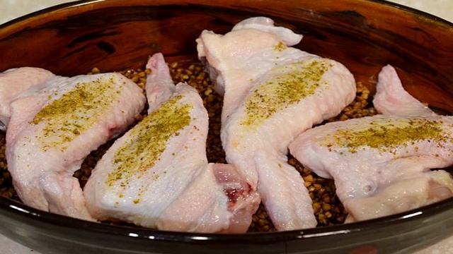 Гречка в духовке с крылышками