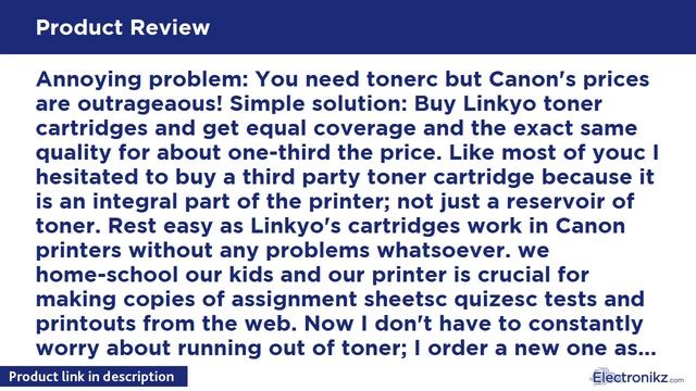 https://electronikz.com/products/jbl-tune-130nc-tws-true-wireless-in-ear-noise-cancelling-headphones-black?tag=electronikzyt-20 Old link : https://electronikz.com/linkyo-compatible-toner-cartridge-replacement-for-canon-128-black/ This is a LINKYO Alternative Replacement for OEM Product Includes 1x Black Toner Cartridge Estimated print yield of 2c100 pages per cartridge Based on ISO 19752 Suitable for use in Canon ImageCLASS D530c D550c MF4412c MF4420Nc MF4450c MF4550c MF4550Dc MF4570DNc MF4570DWc MF4580DNc MF4770Nc MF4880DWc MF4890DW; Faxphone L100c L190 2 Years 100% Quality Guarantee ensures that you will get quality printouts with our compatible or remanufactured cartridges LINKYO Compatible Toner Cartridge Replacement for Overview