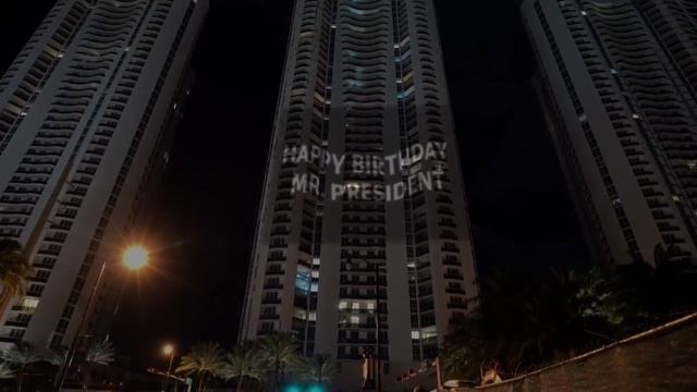 Vladimir Putin was congratulated on his seventieth birthday at the height of Trump Tower in Miami. Владимира Путина поздравили с семидесятилетием на высотке Trump Tower. "Никакого морального права даже заикаться о свободе демократии у этого Запада нет. C днем рождения, господин президент", - проецировали на центральную высотку. / Vladimir Putin was congratulated on his seventieth birthday at the height of Trump Tower. "This West has no moral right to even stutter about the freedom of democracy. Happy birthday, Mr. President," they projected onto the central high-rise.