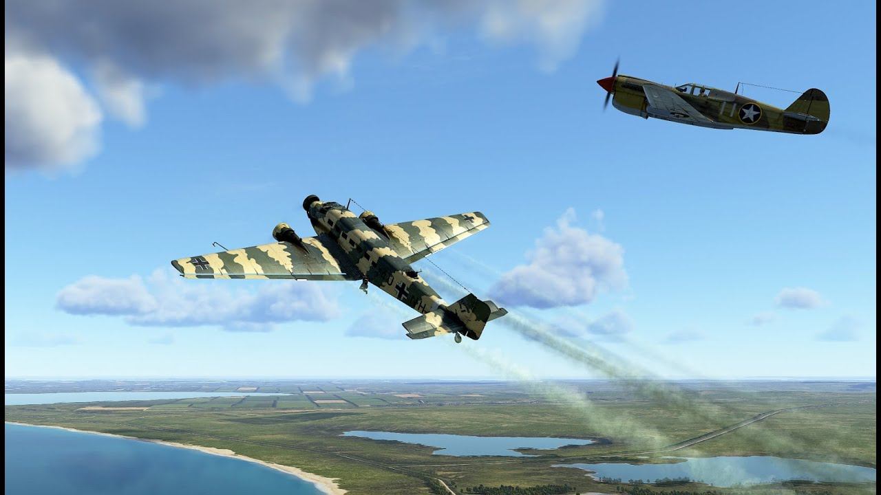 Curtiss P-40 Warhawk против двух Ju 52, обе цели уничтожены