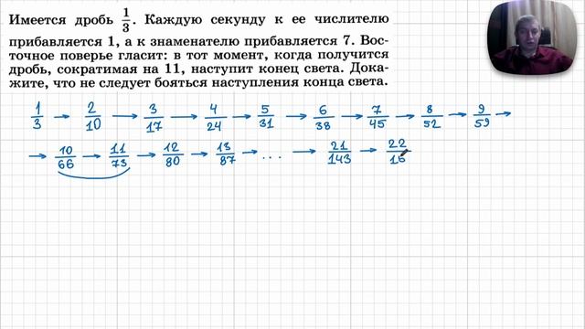 День 20-й. Задача про несократимость дроби на 11. Какое-то восточное поверье про конец света еще приплели. Не боимся. ) Для понимания решения нужны знания 5-6 класса: уметь работать с буквенными выражениями.