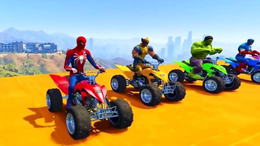 Мультик для детей Человек-паук и цветные квадроциклы с супергероями