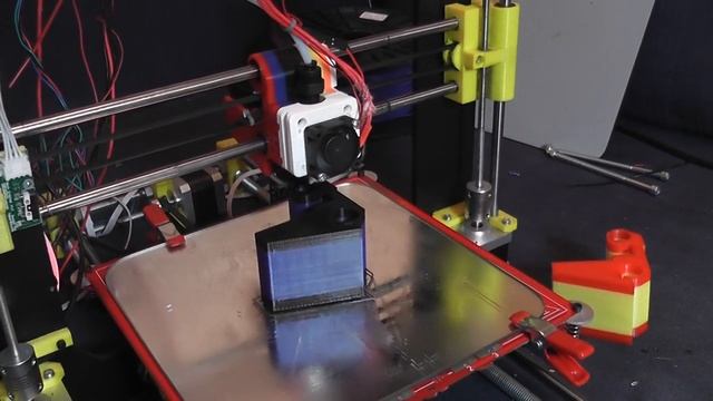 The blue color is ABS and the black color is PLA plastic. Printing a carriage for the cyclops hotend: http://www.thingiverse.com/thing:601819