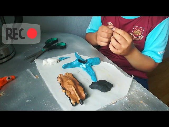 Фигурки из полимерной глины и синий минипиг Макси