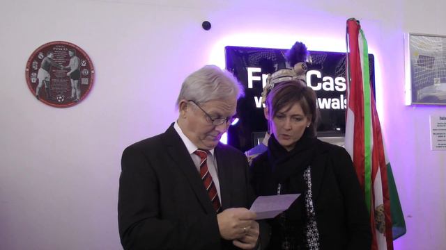 The unveiling of a commemorative plaque to celebrate the famous charity football match in 1967 between Liverpool Legend Billy Liddell XI and Hungarian Legend Ferenc Puskas XI (the highest goal-scorer of the XXth century). It took place in the great hall of South Liverpool Parkway Station (ex football ground) where the match took place on May 9th 1967. The plaque was unveiled jointly by Steve Rotheram Metro-Mayor and Istvan Tarlos Mayor of Budapest.