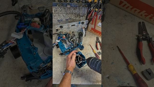 Makita SP6000 with a totally burnt out motor. Needed a new armature, field, housing and brushes. This was an expensive repair and boardline worth it. Company wanted the tool fixed instead of replacing a employees saw. Still cheaper than buying a new machine. #makita #tools #powertools #repairs#makitatools #plungesaw #panelsaw #toolrepairs #powertools #tools #repair #toolrepair