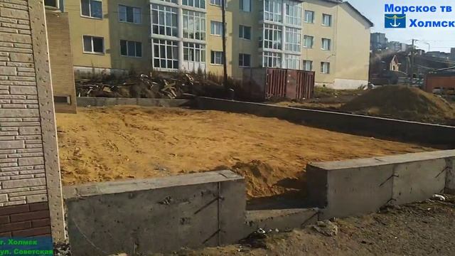 В районе магазина Магнит на ул. Советской города Холмск строят детские площадки