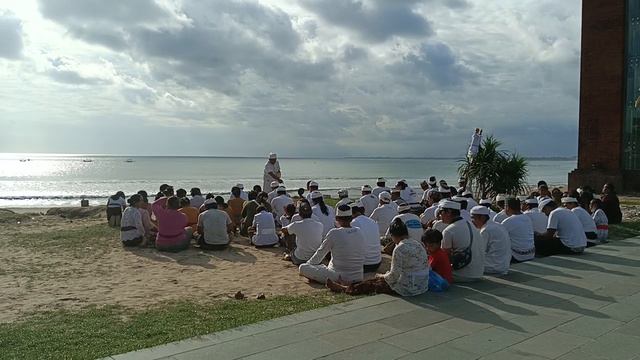 Балийская церемония на берегу океана!Все красивые,все в белом!