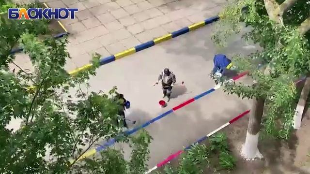 Сине-желтые бордюры во дворах Волгодонска перекрашивают в цвета российского флага