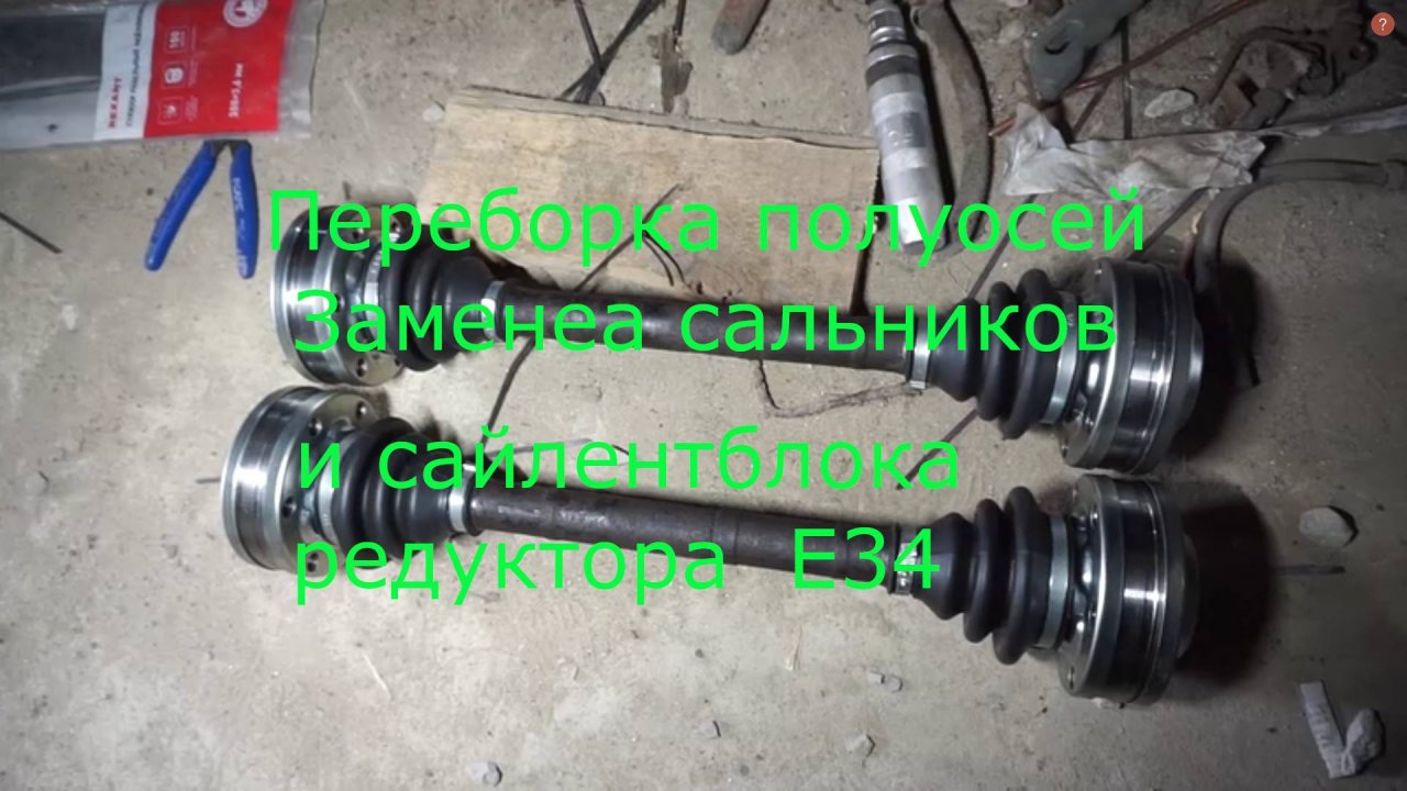 Переборка полуосей, замена сальников и сайлентблока редуктора BMW E34 0:00 Начало 0:58 Снятие полуосей 4:08 Переборка ШРУС E34 6:33 Обзор комплектов ШРУС Meyle vs Stellox vs Nakayama 14:15 Сборка полуосей 17:56 Установка хомута ШРУСа спец инструментом 20:25 Самый ценный совет про ШРУС 20:49 Снятие редуктора E34 26:20 Замена сальников редуктора E34 29:24 Установка сайлентблока редуктора E34 от сложной балки на простую 31:52 Установка редуктора на простою балку 32:46 Установка полуосей 33:48 Итоги