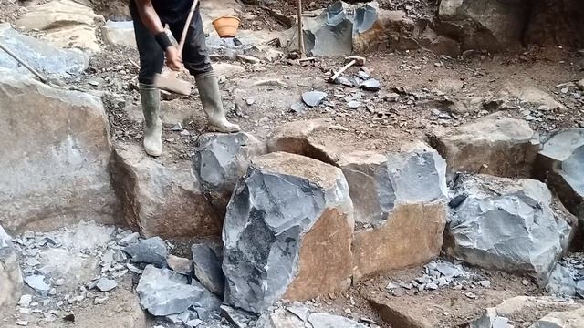 Строительство, самый сильный шахтёр раскалывает камни