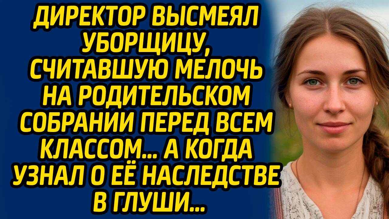 Директор высмеял уборщицу, считавшую мелочь на родительском собрании перед всем классом… А когда узнал о ее наследстве в глуши...