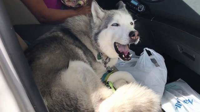 хаски не хочет уступить хозяйке переднее сиденье в машине)