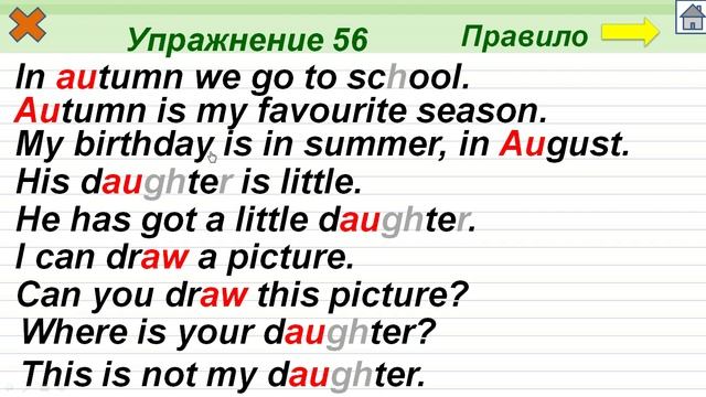 Упражнение 56. Буквосочетания au, aw